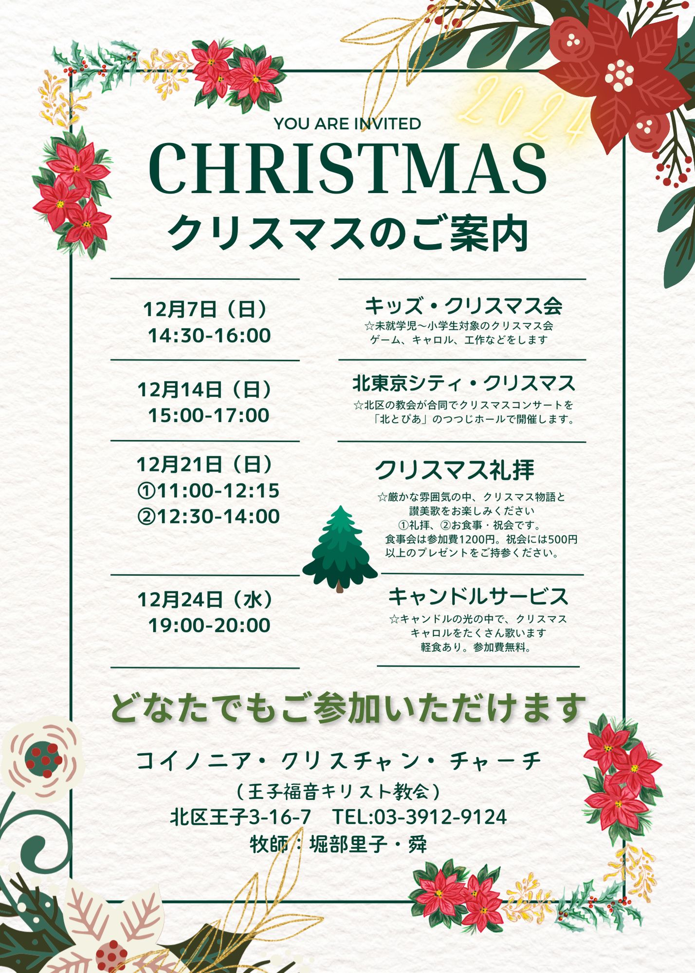2025年12月のクリスマス諸行事の日程のご案内です。どなたでもご参加ください!