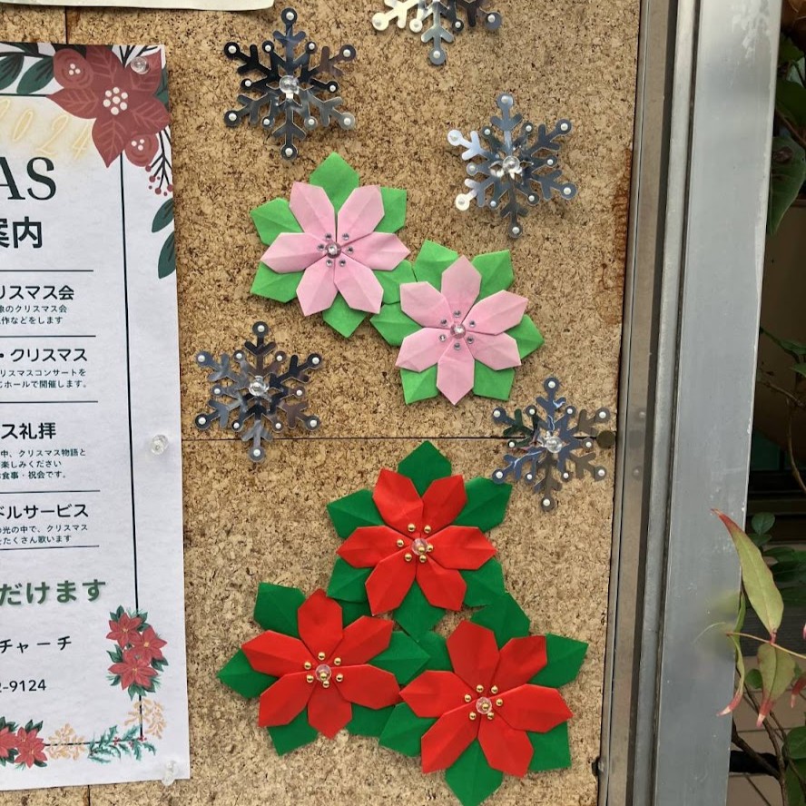 11/23(日)は、礼拝・献児式の後に、食事会を持ちました。メニューはハヤシライス、焼売、胡瓜の辛味噌漬け、コールスローサラダ、林檎ゼリーと柿でした。おいしい食事に力をいただいて、午後は有志でクリスマス飾り付けをしました。飾り付けは、少しずつアップデートされています。掲示板の御言葉もクリスマスバージョンに変化!銀世界の夜に輝く月と星、真ん中に教会が建っています。主の光を共に輝かせましょう☆