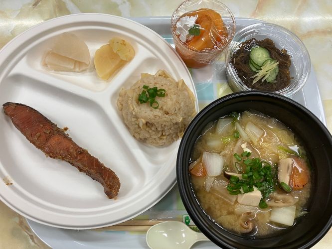 11/30(日)の礼拝の後、愛餐会を持ちました。メニューは、たけのこご飯、焼き紅鮭、もずく、具沢山味噌汁と柿ゼリーです。M兄が「KCCランチ」と呼んでくださいました(KCCはコイノニア・クリスチャン・チャーチの頭文字です)。紅鮭は北海道から、もずくは沖縄から、柿は茨城から送って頂きました!ヘルシーで味わい深い、季節の料理になりました。