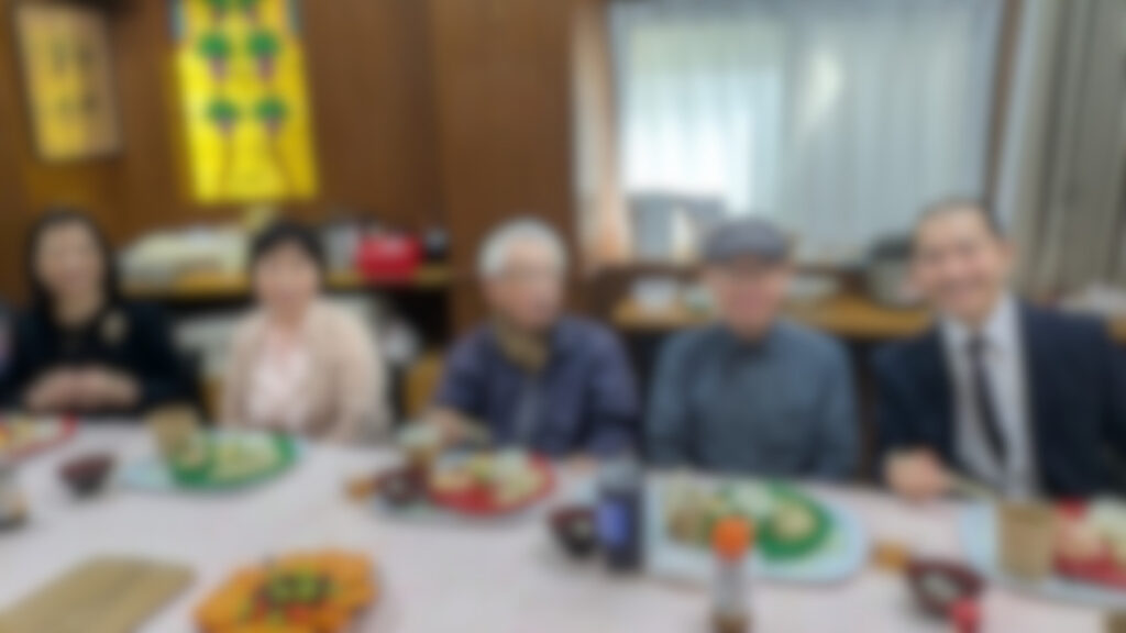 礼拝後、MさんとYさんを囲んで歓迎の食事会が開かれました。メニューは、和風ロールキャベツ、ポテトサラダ、味噌汁、ぜんざい、フルーツ盛り合わせでした。じゃがいも・人参・玉ねぎ・キャベツは、里子牧師の父の畑で収穫された野菜です。